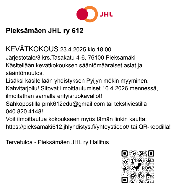 Kevätkokous 2026 - Pieksämäen JHL ry
